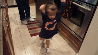 You should know that my husband is a HUGE Chicago Bears fan. No, he didn't grow up in the windy city. He's been a fan since they won the Superbowl in 1985-- am I correct, babe? Well he is continuing the tradition of being a Bears fan onto his daughters. Just shy of a 8 months ago or so, when Ava started talking, he wanted her to say "Go Bears!" in which she said, "du chu!" Now being a big 2-year-old girl, she can say "Go Bears!" with her little arms up straight in the air. It's precious. Emma follows along and can't yet say "Go Bears!" and maybe sometime soon before the season is over, she'll be able to say "du chu chu?!"